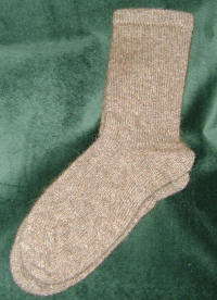 Janet’s circular sock machine from our home grown alpaca sock yarn.